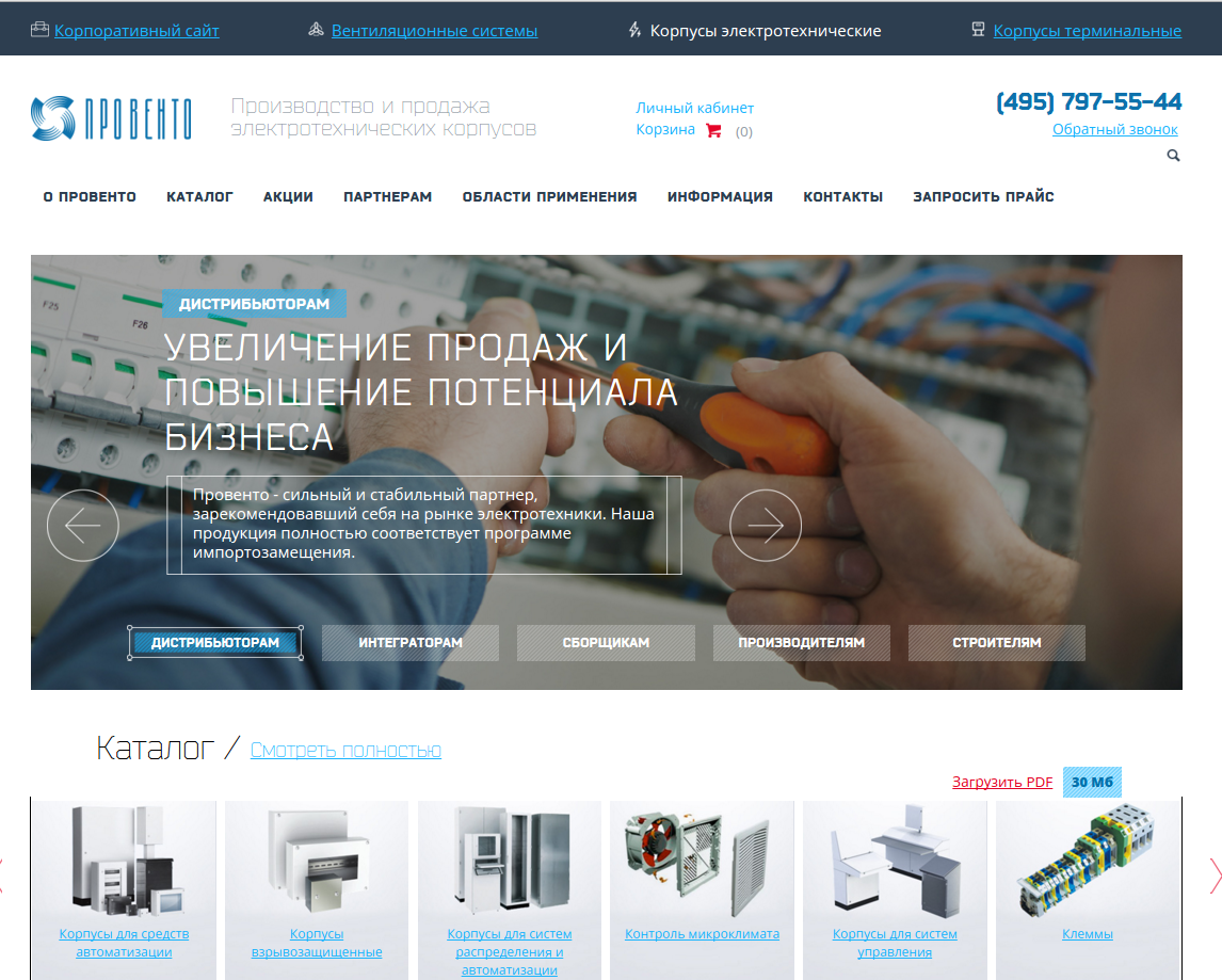 Новый сайт компании «Провенто» — крупнейшего производителя систем электротехники и вентиляции — был создан в соответствии с имиджевыми целями компании. Масштабный и яркий дизайн подчеркивает лидерские позиции компании на рынке, а удобная структура дает возможность ознакомиться с важнейшими аспектами ее деятельности — от исторической справки до актуальных отчетов.