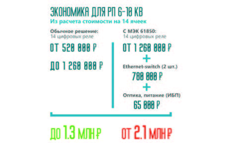 По оценкам специалистов, в обустройство шины из 14 цифровых реле на основе стандарта МЭК 61850 для ПС электросетевой компании придется инвестировать более 2 млн руб. Установка релейной защиты из 14 ячеек для этого энергообъекта обойдется в 520 тыс. – 1 260 тыс. руб. Стоимость проекта зависит от выбора производителя оборудования. Следовательно, использование МЭК 61850 на РП 6-10 кВ сопоставимо с удвоением капиталовложений в РЗА. Если добавить в расчет обучение специалистов, то сумма существенно увеличится.
