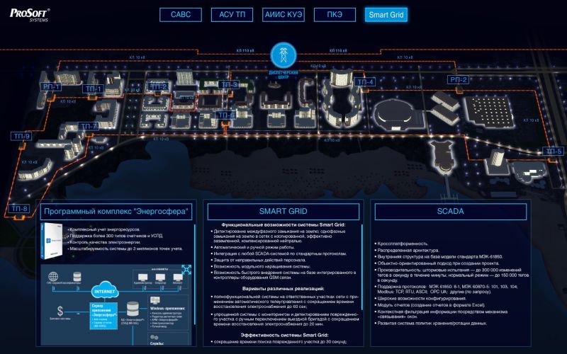 ООО «Прософт-Системы» ежегодно автоматизирует сотни промышленных объектов, сформировав репутацию надежного и компетентного участника как российских, так и международных проектов. Компания уже имеет успешный опыт реализации интеллектуальных сетей в республике Татарстан. Внедренная там система Smart Grid существенно снижает показатели SAIDI, обеспечивает высокую наблюдаемость сети в реальном времени, в считанные секунды выявляет поврежденные участки и восстанавливает энергоснабжение.