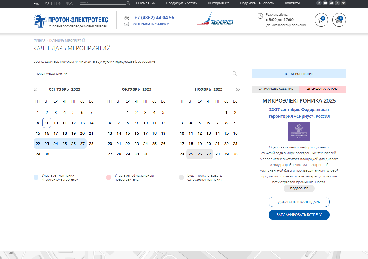 На сайте предприятия собрана вся необходимая информация для действующих и потенциальных клиентов. На сайте представлены новости компании, технические статьи, календарь мероприятий, где участвуют представители компании, технические характеристики продукции, подробное описание и особенности применения изготавливаемых приборов, а также техническая документация (информационные листы, паспорт, 3Д модели, необходимые для проведения моделирования).