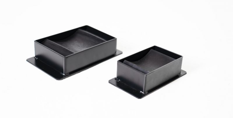 Конструктивно форма виброопоры для трансформаторов имеет идеальную плоскую установочную поверхность и подобранную выемку под ролик радиусом скругления под самые распространенные диаметры выкатных катков / роликов трансформаторов зарубежного и отечественного производства.