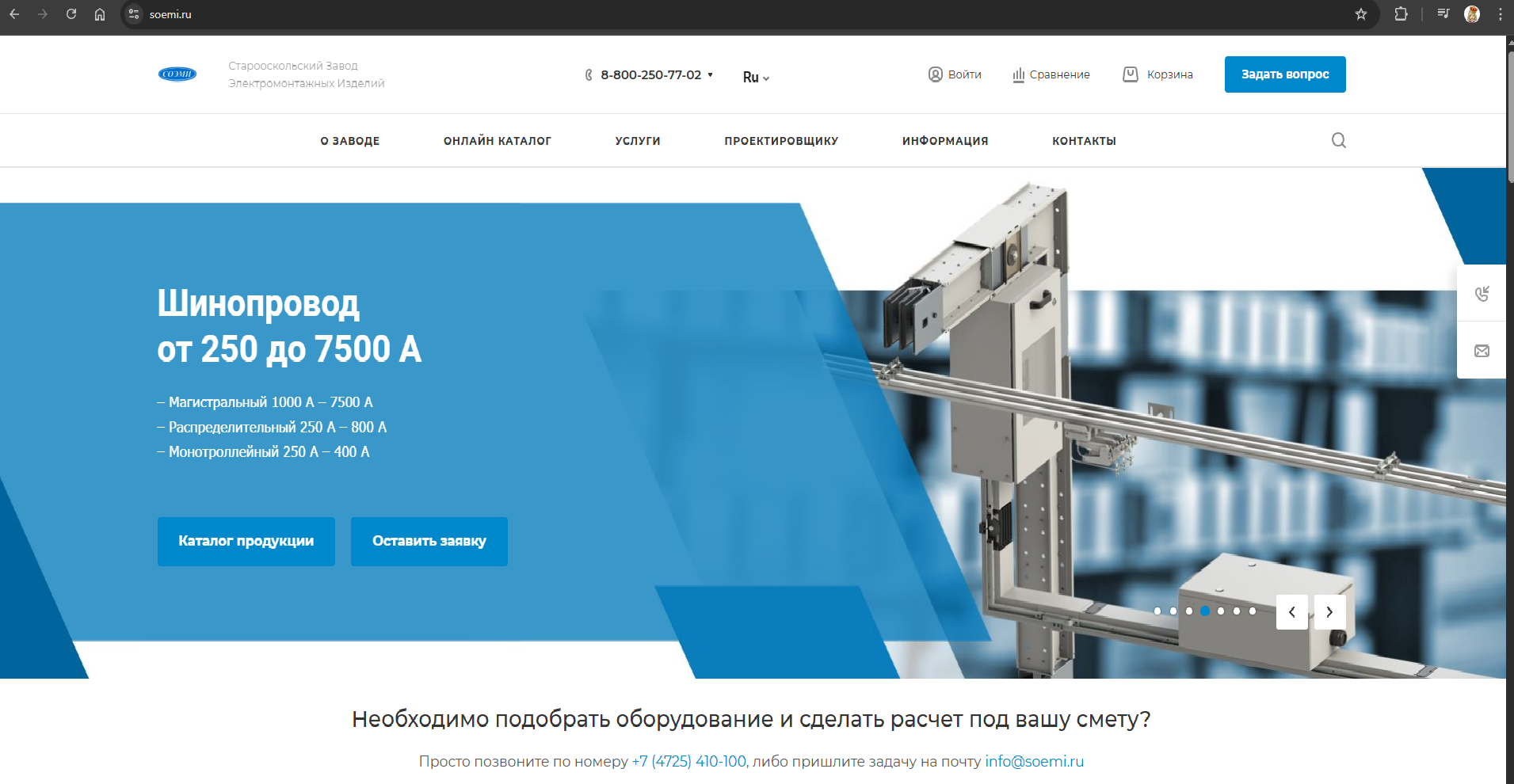 Наш сайт создан как удобная и информативная платформа, на которой представлена полная линейка продукции завода, включая шинопроводы, электромонтажные изделия, фальшполы, молниезащиту и низковольтные устройства.