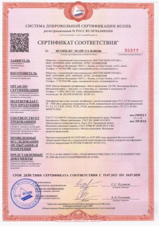 - — Сертификат соответствия ГОСТ Р12.1.004−91 «Система стандартов безопасности труда. Пожарная безопасность».