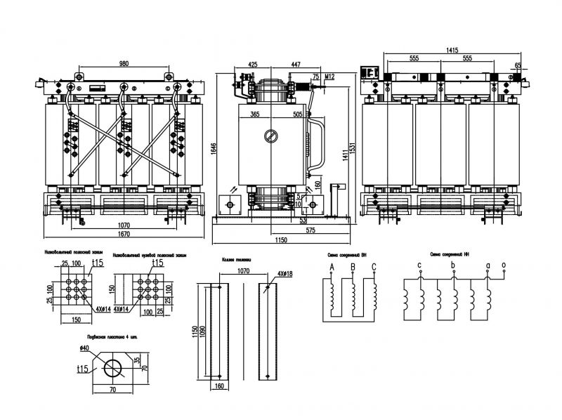 Чертеж сухого трансформатора ТСЛ 3150 ква с литой изоляцией