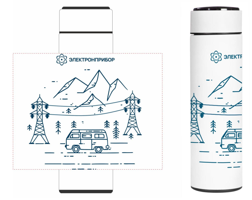 Готовый проект сувенирной продукции компании ООО «ЭЛЕКТРОНПРИБОР» ( www.electronpribor.ru) включает пять позиций: стикерпак с маскотом Электрончиком, дождевик, шоппер, термос с авторским принтом и сумку для ноутбука.