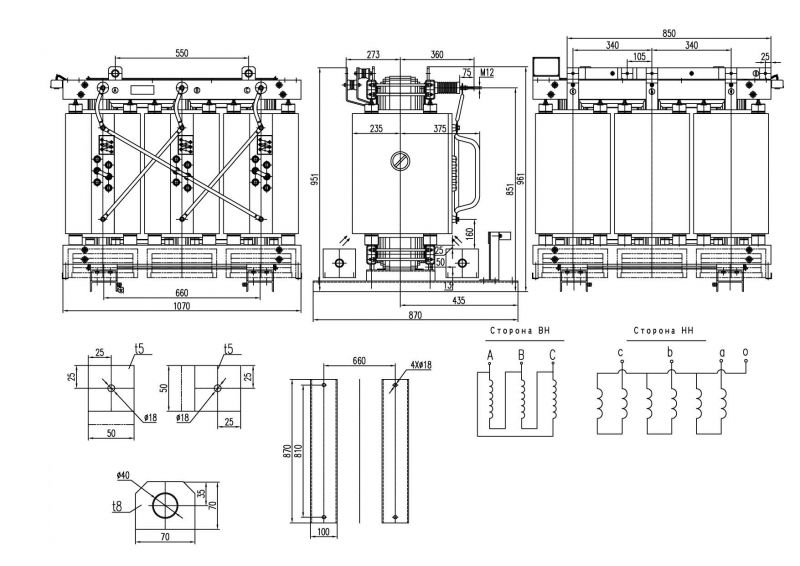 - Тип: ТСЗЛ (трехфазный, сухого типа, защищенный с литой изоляцией).