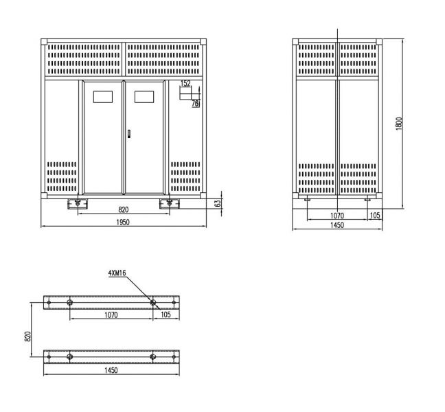 - Габариты трансформатора в кожухе, мм: 1950×1450×1800.