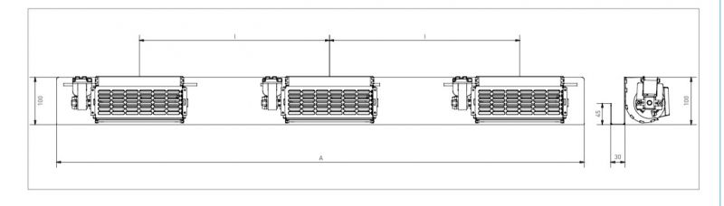 Расстояние между центрами вентиляторов от 445 до 565мм